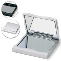 Make-up-Spiegel (Normal- und Vergrößerungsspiegel). Abmessung: 6,8x6,4x1,1 cm. Druckgröße: 50x25 mm. Erhältlich in den abgebildeten Farben.