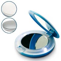 Make-up Spiegel mit weißem LED Licht. Inkl. 4 Knopfzellen. Abmessung: 7x7x1,3 cm. Druckgröße: 30x30 mm. Erhältlich in den abgebildeten Farben.