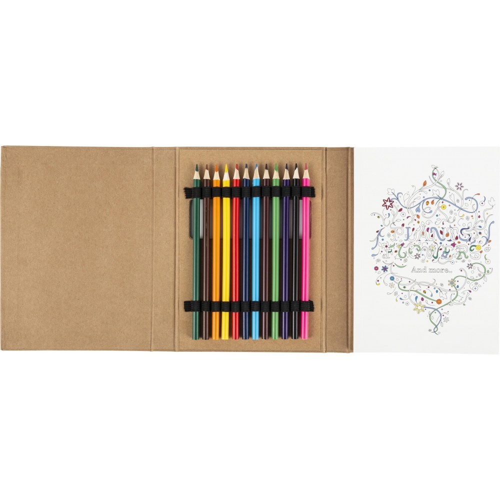Artikel-Nr: GIV8670011Malbuch 'Kora' für Erwachsene mit 50 Bildern zum Ausmalen. Inklusive 12 Buntstifte.
