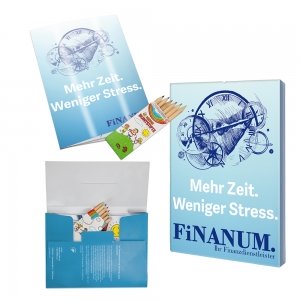 Artikel-Nr: HOP16.10001.00-14Unsere Malbücher bieten Kindern eine unterhaltsame und kreative Möglichkeit, die Welt spielerisch zu entdecken. Mit 18 liebevoll gestalteten Ausmalmotiven fördern sie nicht nur die Kreativität, sondern vermitteln auch wertvolles Wissen. Zwei Varianten stehen zur Auswahl: • Malbuch einzeln. • Mal-Set: Enthält zusätzlich eine praktische 6er-Buntstiftbox (Standardgestaltung), geliefert in einer hochwertigen, bedruckten Mappe. Veredelungsmöglichkeiten: • Standardausführung: Ab Lager lieferbar, optional mit zusätzlichem Logoeindruck. • Individuelle Gestaltung: Ab 500 Stück mit personalisierten Außenseiten für ein einzigartiges Design.