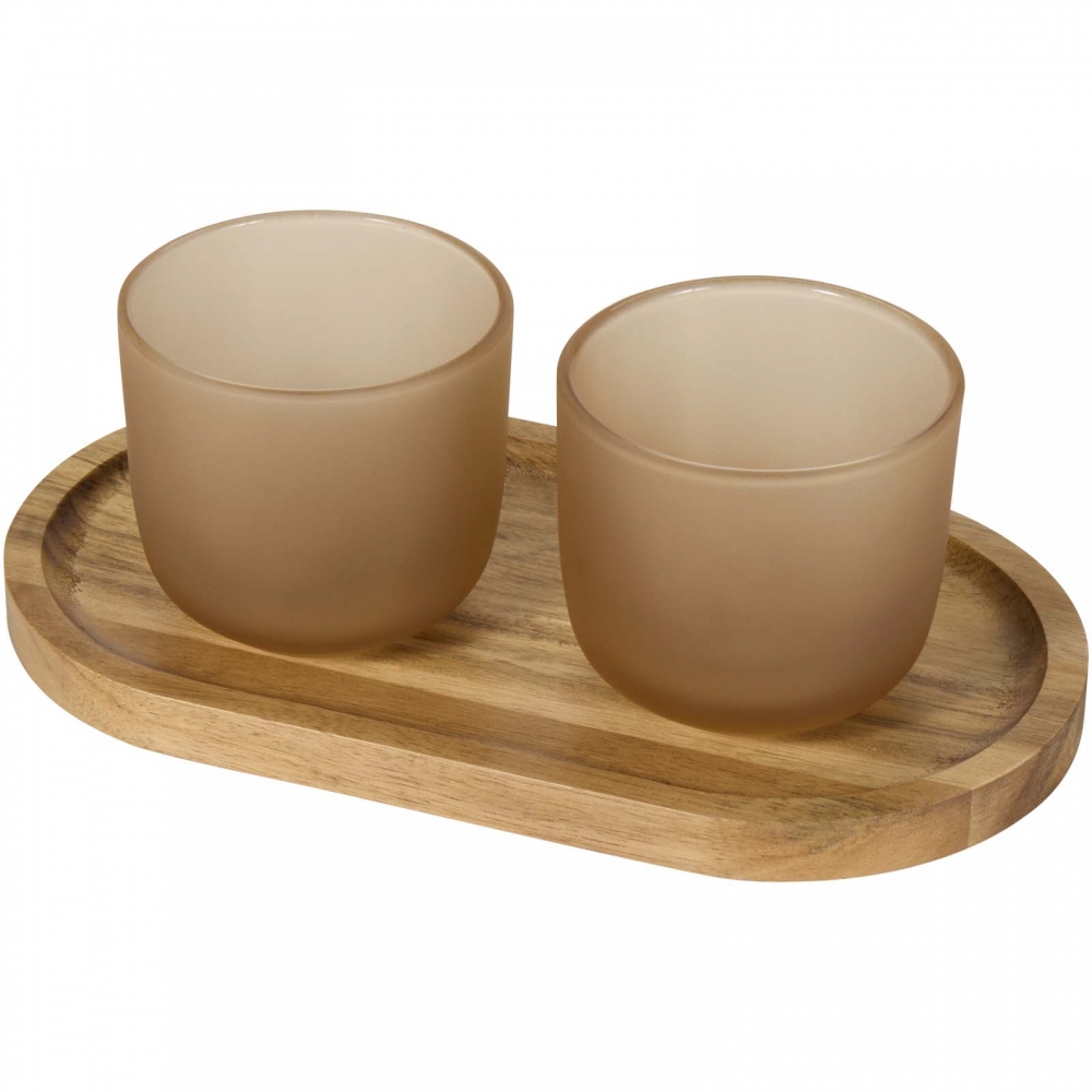 Male Set aus Holztablett und Glastassen