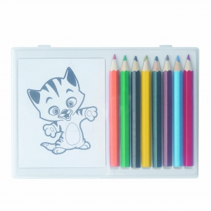 Artikel-Nr: INP56-0504096Malset CRAZY ANIMALS: inkl. 12 Malblätter mit verschiedenen Tiermotiven zum Ausmalen, 8 lackierte Buntstifte, angespitzt, in transparenter Box