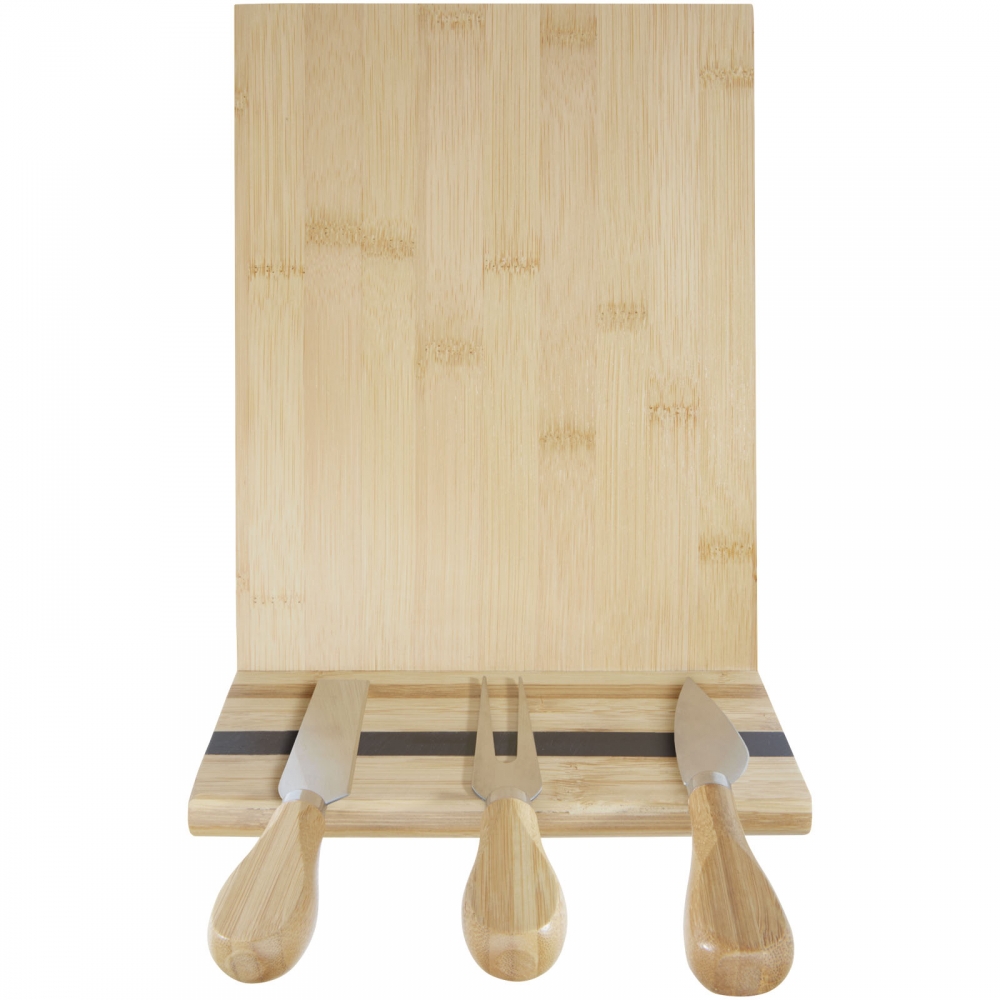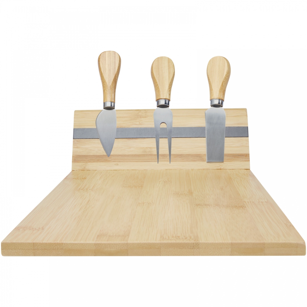 Artikel-Nr: CPO113302064-teiliges Käseset aus Bambus, bestehend aus einem Käsebrett (30 x 20,2 x 7,6 cm), 2 Käsemesser (12,5 x 2,5 cm und 12,5 x 2,7 cm) und einer Käsegabel (13,5 x 2,4 cm). An der Seite des Käsebretts befindet sich ein Magnetstreifen, an dem das Käsebesteck befestigt wird, so dass Sie den Käse stilvoll servieren können. Der verwendete Bambus wird nach nachhaltigen Normen beschafft und produziert.