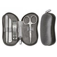 4-teilige Maniküre aus Edelstahl im Etui aus Kunstleder.