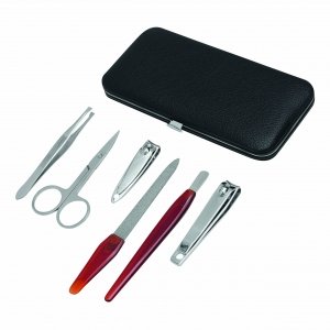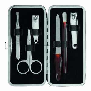 Artikel-Nr: INP56-0499094Maniküreset AMELIE, 6-teilig: bestehend aus Nagelschere, Nagelfeile, Pinzette, Nagelschaber, großem und kleinem Nagelknipser, im rechteckigen Etui mit Seitknopfverschluss