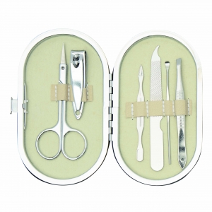 Artikel-Nr: INP56-0499096Maniküreset DENISE, 6-teilig: bestehend aus Nagelschere, Nagelfeile, Pinzette, Nagelknipser, Nagelstab und Nagelschaber, im ovalen Etui mit Seitknopfverschluss