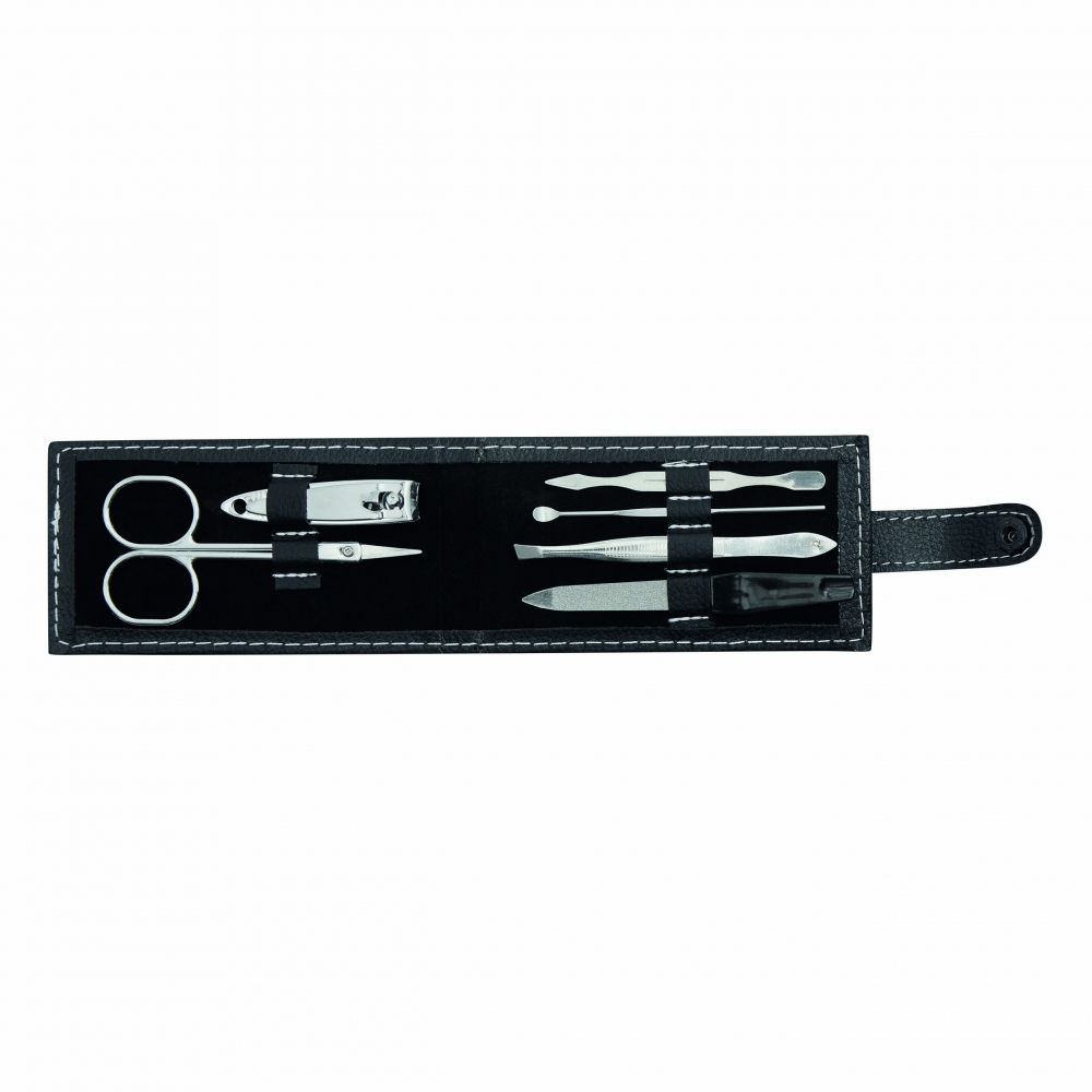 Artikel-Nr: INP56-0499095Maniküreset ELAINE, 6-teilig: bestehend aus Nagelschere, Nagelfeile, Pinzette, Nagelknipser, Nagelstab und Nagelschaber, im Druckknopfetui
