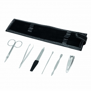 Artikel-Nr: INP56-0499095Maniküreset ELAINE, 6-teilig: bestehend aus Nagelschere, Nagelfeile, Pinzette, Nagelknipser, Nagelstab und Nagelschaber, im Druckknopfetui