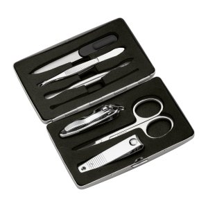 Artikel-Nr: RFS51427-SOb auf Reisen oder zuhause, das Maniküre-Set mit sieben Utensilien zur Nagelpflege ist in einem Aluminiumetui untergebracht. Es enthält Nagelfeile, Nagelschere, Nagelknipser, Pinzette und Nagelhautschieber. Veredelbar ist das Etui mit einer dezenten Lasergravur oder einem einfarbigen Tampondruck.