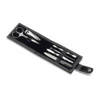 Artikel-Nr: 34251241Schöne Hände und schöne Nägel machen attraktiv. Dieses aparte Maniküretui aus schwarzem Kunstleder ist Heimat für eine Nagelschere, einen Nagelknipser, Feile, Pinzette, Nagelhautschieber und -reiniger.