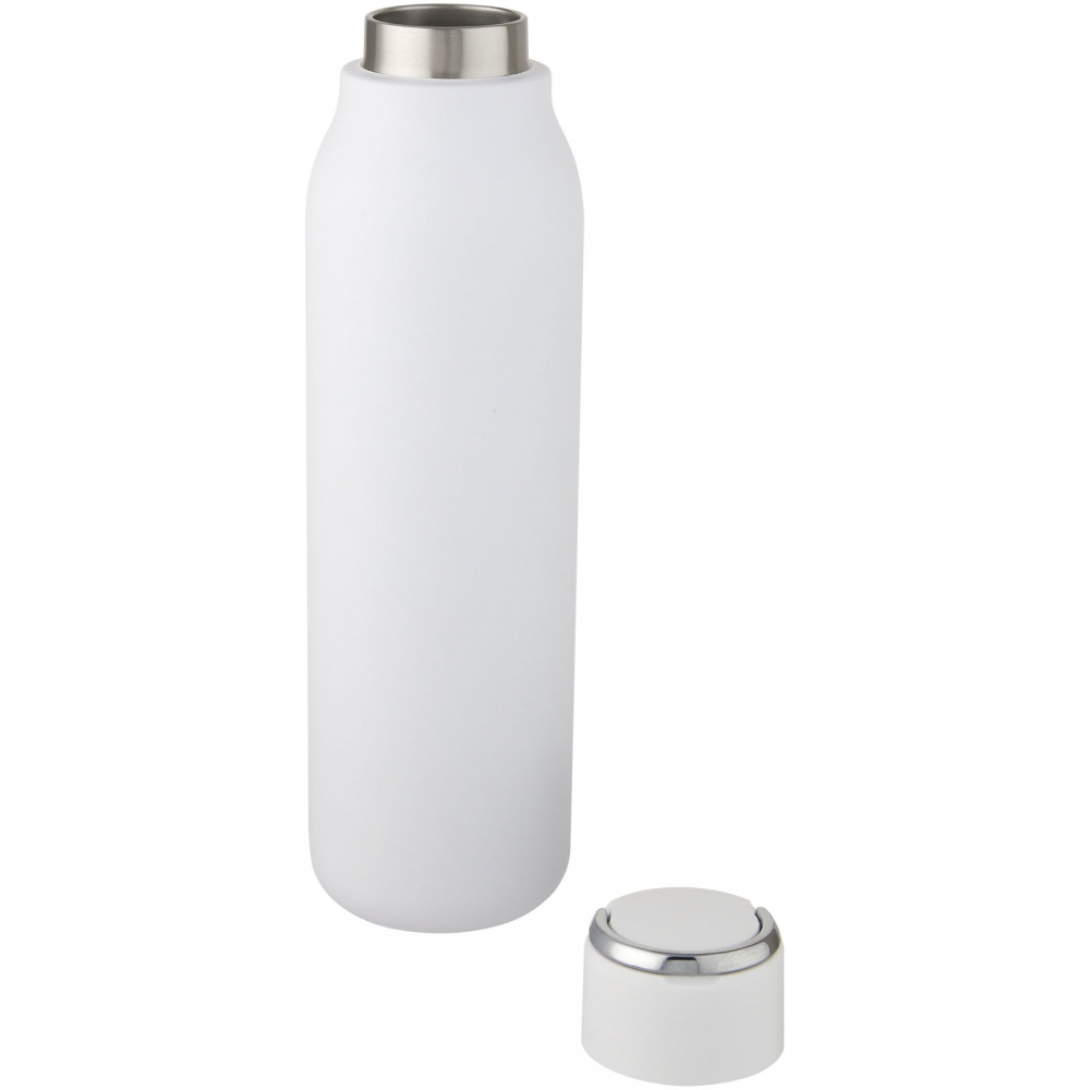 Artikel-Nr: CPO10067201Die Marka-Flasche hat eine Vakuumkonstruktion aus Edelstahl mit Kupferisolierung, die Getränke mehrere Stunden lang heiß oder kalt hält. Die isolierte Konstruktion aus 18/8-Edelstahl verhindert die Bildung von Kondenswasser an der Außenseite der Flasche, und die trendige Pulverbeschichtung macht sie besonders haltbar. Außerdem verfügt sie über einen schraubbaren, auslaufsicheren Deckel und eine haltbare Handschlaufe aus Zinklegierung. BPA-frei, geprüft und zugelassen nach dem deutschen Lebensmittelrecht (LFGB). Auf Phthalate geprüft und zugelassen gemäß den REACH-Vorschriften. Passend für die meisten gängigen Auto-Getränkehalterungen. Das Fassungsvermögen beträgt 600 ml. Handwäsche empfohlen. Verpackt in einer Geschenkbox aus Recyclingkarton.