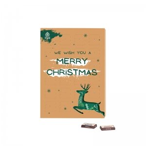 Artikel-Nr: PUC1211.00002Wand Adventskalender mit Markenschokolade, in weißer Vollkarton-Hülle, individuell bedruckt. Inhalt: 24 Sarotti Schokoladentäfelchen in 4 verschiedenen Sorten (Vollmilch, Zartbitter, Haselnuss, Gianduja) bunt gemischt, 100g Saisonartikel - solange der Vorrat reicht!