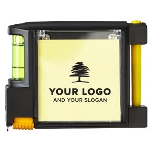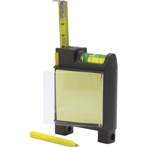 Artikel-Nr: GIV2147001Maßband aus Kunststoff, Messbereich 2 m, mit Kugelschreiber mit blauer Mine, Notizblock, Maßband, Wasserwaage und Gürtelclip.