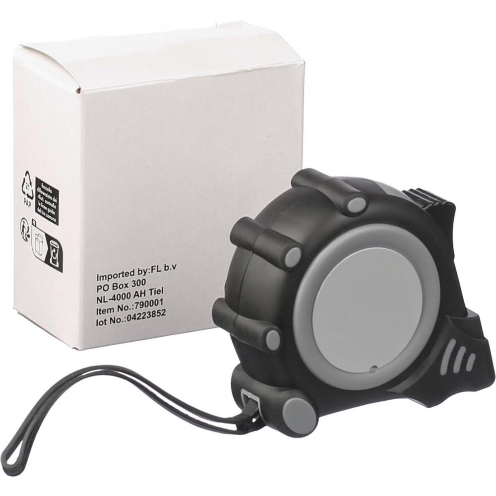Artikel-Nr: GIV7900001Kunststoffbandmaß, Messbereich 3 m, geeicht, mit Zentimeter- und Inch-Einheiten, Handgelenkschlaufe, Schloss und Gürtelclip.