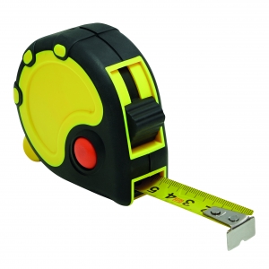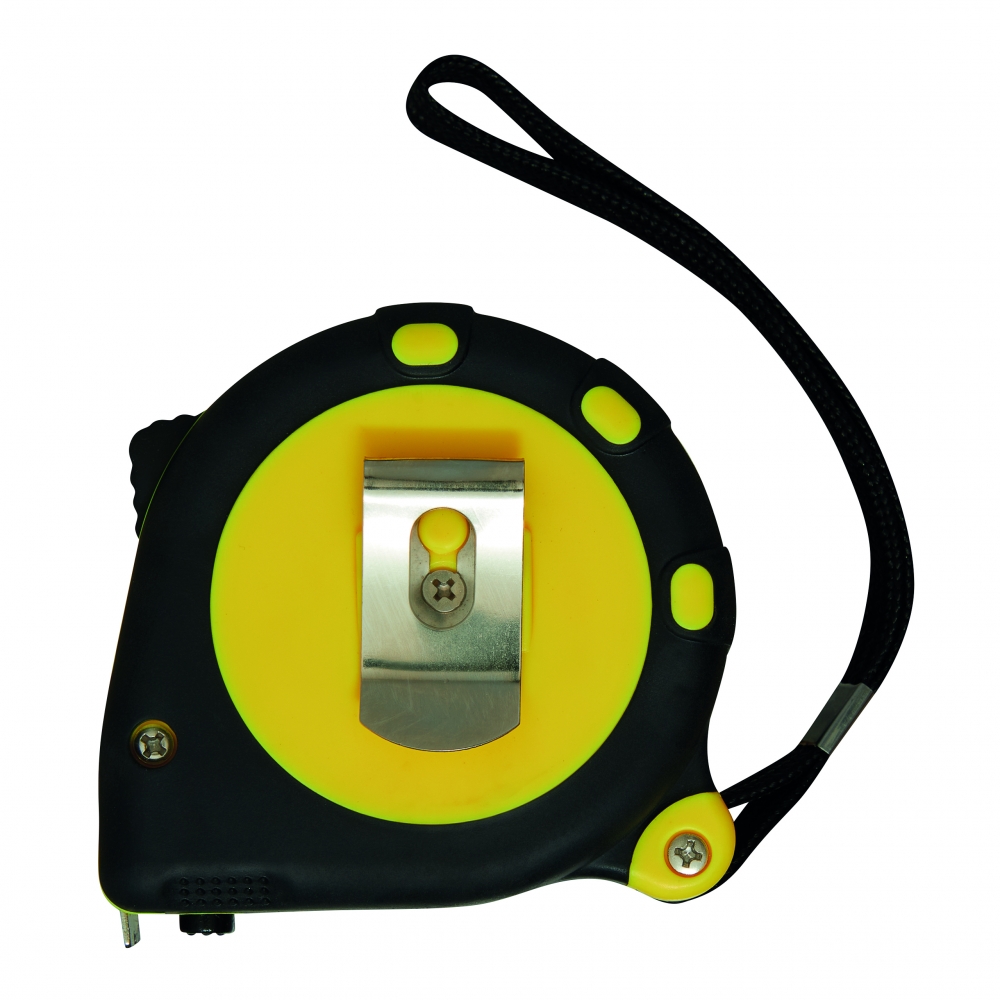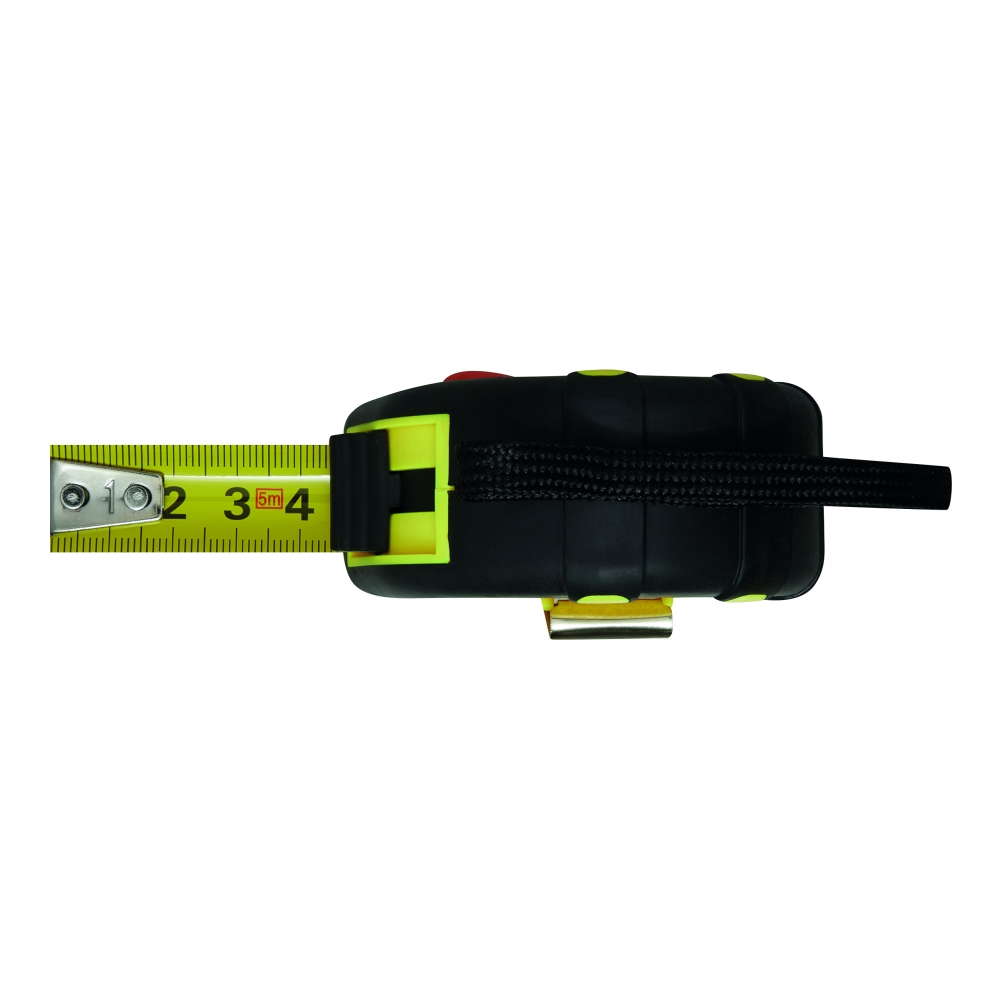 Artikel-Nr: INP56-0403203Maßband BASIC II: Automatik mit Feststeller, praktischer Befestigungsclip auf der Rückseite, mit Trageschlaufe, in gummiertem Gehäuse, 5 m, in Box