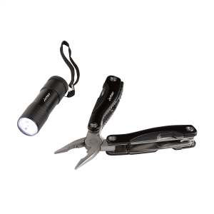 Artikel-Nr: CLP265922-001Funktionelles und umfassendes Geschenkset: 9-teiliges Edelstahl Multitool mit 12 Funktionen (Pinzette, Isolierzange, Säge, 2 Schraubenzieher, Dosenöffner, Kapselheber, Feile, Messer, Kreuzschraubenzieher, Fischentschupper, Haken-Entferner) und Aluminiumgriff in Metalloptik. Aluminium Taschenlampe (Ø 2,7 x 9 cm) mit 9 rein-weißen energieeffizienten LEDs und abnehmbarer Schlaufe. Inklusive Batterien. Beachten Sie, dass möglicherweise lokale Vorschriften für den Besitz und / oder das Tragen von Messern oder Multitools in der Öffentlichkeit gelten.