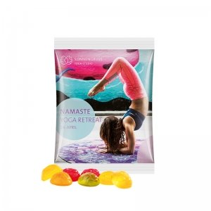 Artikel-Nr: PUC1024.00009Trolli Fruchtgummi in Tüte aus weißer Folie, individuell bedruckt. Inhalt: Trolli Fruchtgummi Fußbälle, in Premium Qualität mit 10 % Fruchtsaftanteil, bunt gemischt, 50 g