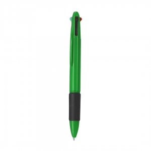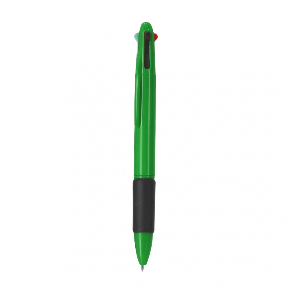 Artikel-Nr: KTO22295004000Mehrfarbiger Stift aus widerstandsfähigem recyceltem ABS. Mit Griff mit Gummioberfläche. 4-in-1 mit einziehbarem Druckmechanismus. Von 4 Patronen in blauer, roter, schwarzer und grüner Tinte. Mit markantem RABS-Logo.
