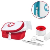 Artikel-Nr: W529MO7532Erste Hilfe Set. Auf der Front ein weißes Kreuz. Bestehend aus Schere, Metall-Pinzette, 1 Verband, Pflasterrolle, sowie Dreieckstuch (Armschlinge). Verpackt in 190T Polyestertasche mit Reißverschluß. Abmessung: 8,5x11x4,5 cm. Druckgröße: 40x20 mm. Erhältlich in den abgebildeten Farben.
