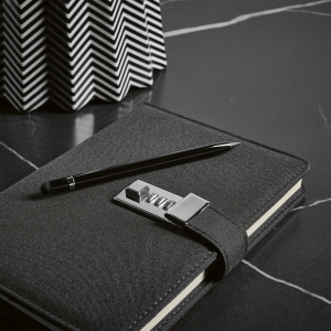 Artikel-Nr: ADCANT016-103Das Melville A5 ist ein abschließbares Notizbuch mit einem Einband aus 300D rPET. Es verfügt über ein herausnehmbares Notizbuch mit 192 FSC-zertifizierten Seiten aus 70 gsm einfachem, elfenbeinfarbenem Papier, jeweils mit vorgesehener Fläche für Datum und Seitenzahl. Zwei Innenfächer bieten Platz für eine bessere Organisation.