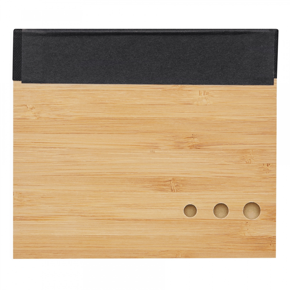 Artikel-Nr: INP56-1103271Memobox BAMBOO NOTE: inkl. Klebepfeilblöcken in 3 verschiedenen Farben und 2 verschiedenfarbigen Klebezettelnotizblöcken, je 150 Blätter, im Bambus-Etui - aus recycelbaren Materialien