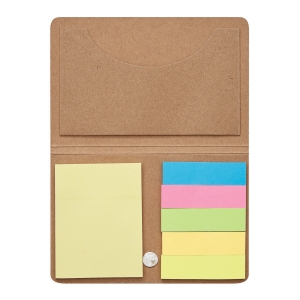 Artikel-Nr: INP56-1103139Memo box STICK ME: 1 Klebezettelnotizblock und 5 verschiedenfarbige Klebezettelblöcke, innen Visitenkarten-Einsteckfach, außen Gummiband zum Fixieren – aus recycelbaren Materialien