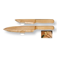 Bestehend aus 2 Küchenmessern ca. 25 und 32 cm, mit integrierter Stahlklinge, nachschärfbar, im Öko-Designkarton