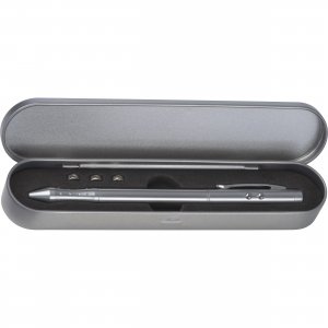 Artikel-Nr: EAG279807Laserpointer aus Metall mit Kugelschreiber (rot- und blauschreibende Mine) und LED-Lampe. Im Lieferumfang sind drei Knopfzellen und die Metallbox bereits enthalten. Ihre Werbung lasern wir auf den Schaft.