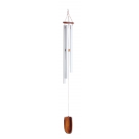 Windspiele aus Aluminium-Röhren und mit Holzkranz. Erhältlich in den Größen 50 cm, 75 cm und 100 cm.