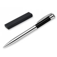 Metallkugelschreiber in schwarzer Geschenkbox, blauschreibende Mine.