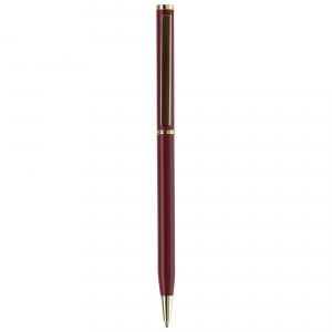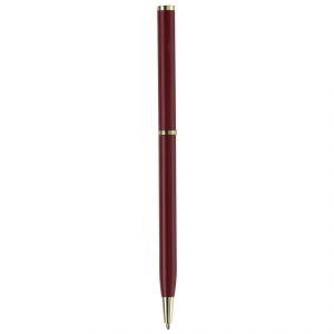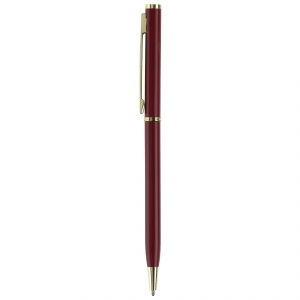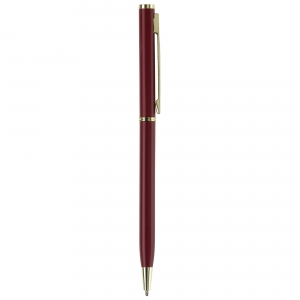 Artikel-Nr: ART87060N0021Dünner Metallkugelschreiber. Farbig matt mit goldfarbigen Teilen. Blauschreibende Metallmine.