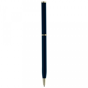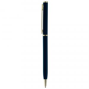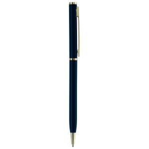Artikel-Nr: ART87060N0011Dünner Metallkugelschreiber. Farbig matt mit goldfarbigen Teilen. Blauschreibende Metallmine.