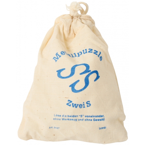 Im Baumwoll-Säckchen. Aufgabe des hochwertigen Metallpuzzles ist es, die Teile voneinander zu trennen und wieder zusammenzusetzen. Achtung! Nicht geeignet für Kinder unter 36 Monaten.
