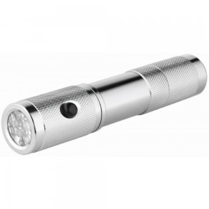 Artikel-Nr: SPZ850-00.008Taschenlampe mit 9 LED und separat zu schaltender Warn-LED, außerdem mit Gurtcutter und Nothammer. LED: 12 Lumen, Leuchtdauer: 6h, Spritzwasser- und überspannungsgeschützt, VPE 40. Nothammer, Gurtcutter, Gürteletui, 3 AAA-Batterien, Designkarton