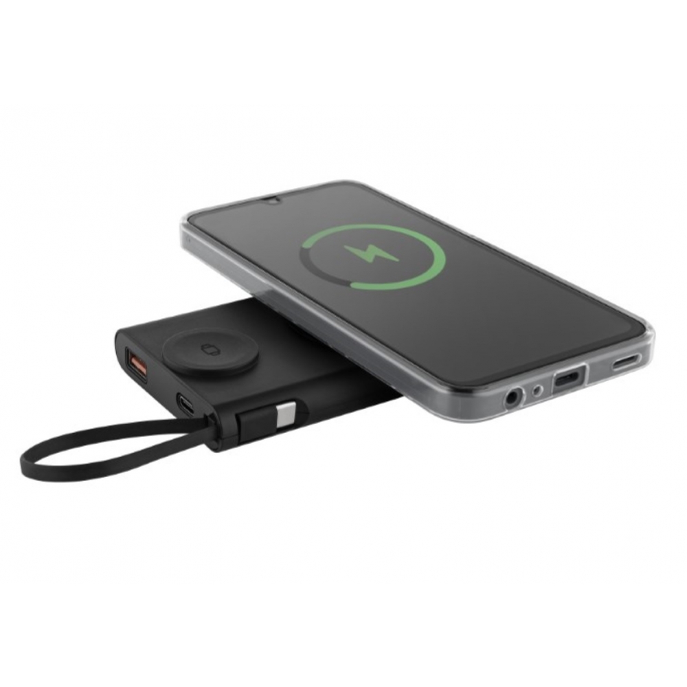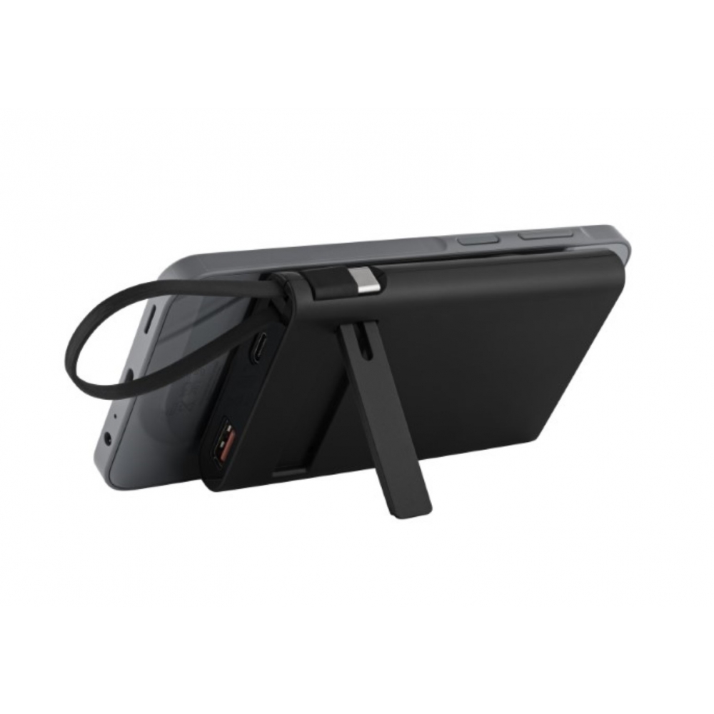 Artikel-Nr: SPZ5319-00.001Die Metmaxx® Powerbank "Dr. ChargeUniversalPro10" bietet beeindruckende 10.000 mAh Leistung in einem außergewöhnlich kompakten Format. Mit der superschnellen PD (Power Delivery) 20 Watt Fast Charging Technologie (kabelgebunden), lädt sie Geräte blitzschnell auf – Dualport In- oder Output. Schnelles kabelloses Laden per Magsafe® Wireless Fast Charging (15 Watt inkl. 3 Watt für Airpod®), zweites Induktionsfeld speziell für die Apple® Watch (2.5W) optimiert. So haben Sie immer die richtige Ladeoption für Ihre Geräte zur Hand – völlig kabellos und mühelos. Auch andere Geräte können Dank des zusätzlich eingebauten Kabels (USB-C) sofort und überall mit Energie versorgt werden. Der integrierte Sicherheitskreislauf (SecuityCircuit) schützt vor Über-, Unterladung, Überspannung und Überhitzung. Die aus recycelten Materialien hergestellte Powerbank bietet zusätzlich einen versteckten Handyaufsteller, eine brillante Werbefläche und wird in einer umweltfreundlichen Craft Paper Box geliefert.