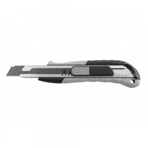 Artikel-Nr: SPZ9310-00.000Profi-Sicherheitscuttermesser mit einziehbarer, feststellbarer und wechselbarer Black Blade (SK5) Schneideklinge für den harten Arbeitseinsatz, gehärteter Metallkopf zum Öffnen von Kartons (ideal für Logistik & Handwerk), schlagzähes TPR-Gehäuse. Die Klinge ist mit einem Rückzugsmechanismus für sicheres Schneiden ausgestattet. Sicherheitsklinge SK5, Rückzugsmechanismus, feststellbar, VPE 100. -