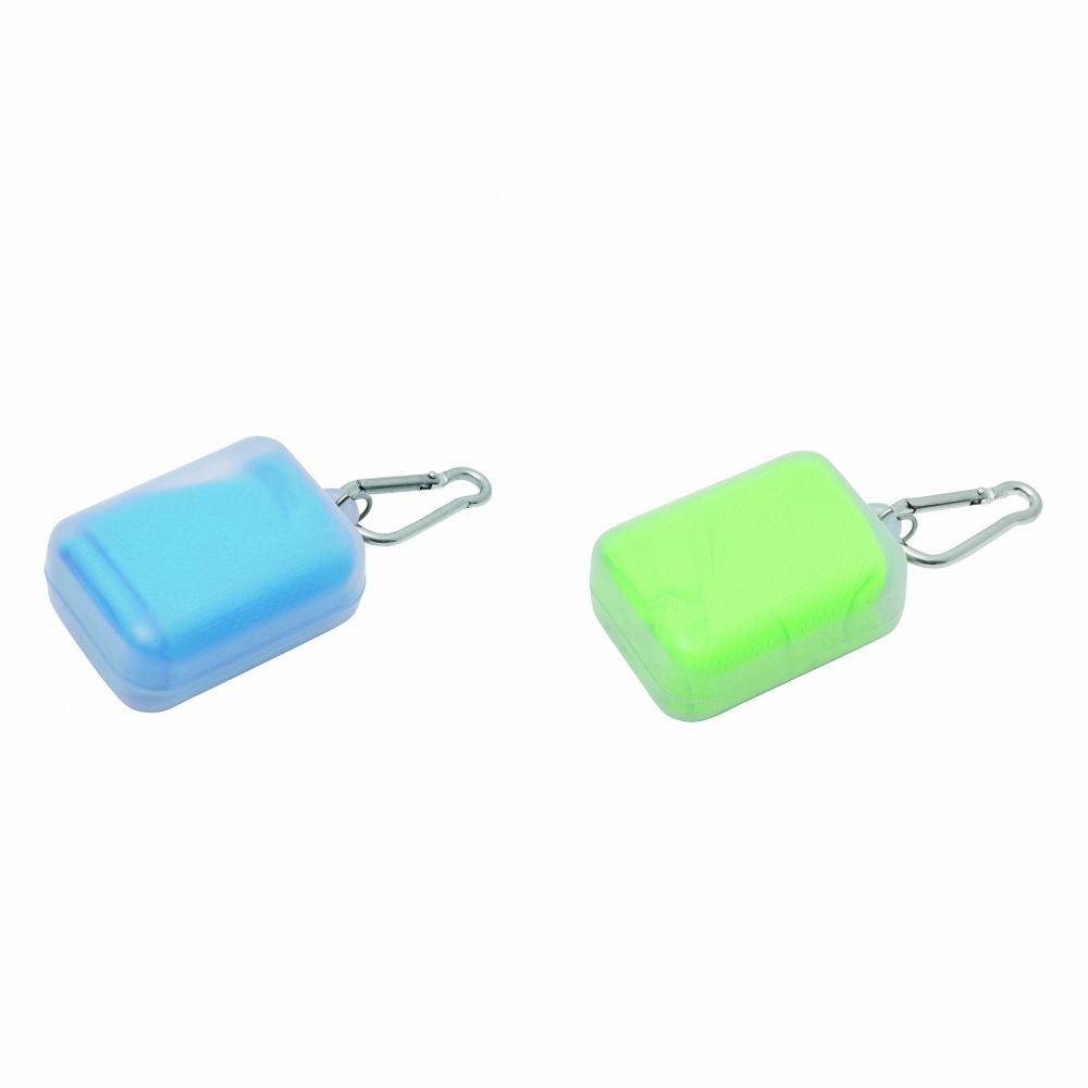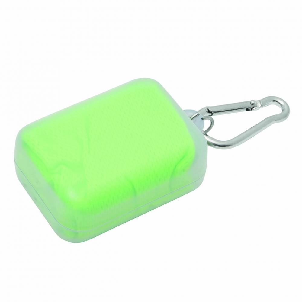 Artikel-Nr: INP56-0605076Mikrofaser-Kühlhandtuch COOL DOWN mit Aufhängeöse, in transparenter Dose mit Karabinerhaken: für einen lang anhaltenden Kühleffekt Handtuch unter Wasser halten, auswringen und in der Luft schwingen - ideal für Fitness und Sportaktivitäten (der Karabiner ist NICHT als Sicherung beim Klettern geeignet)