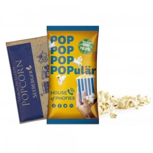 Artikel-Nr: MGN06003-0002Popcorn-Mais für die Mikrowelle, wählbar in süß oder salzig. Verpackt im individuell bedruckten Werbetütchen.