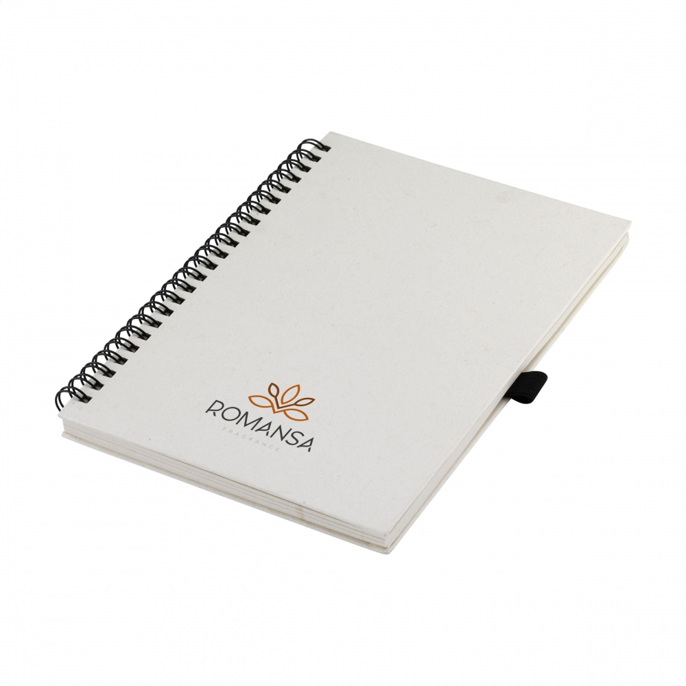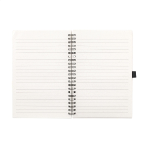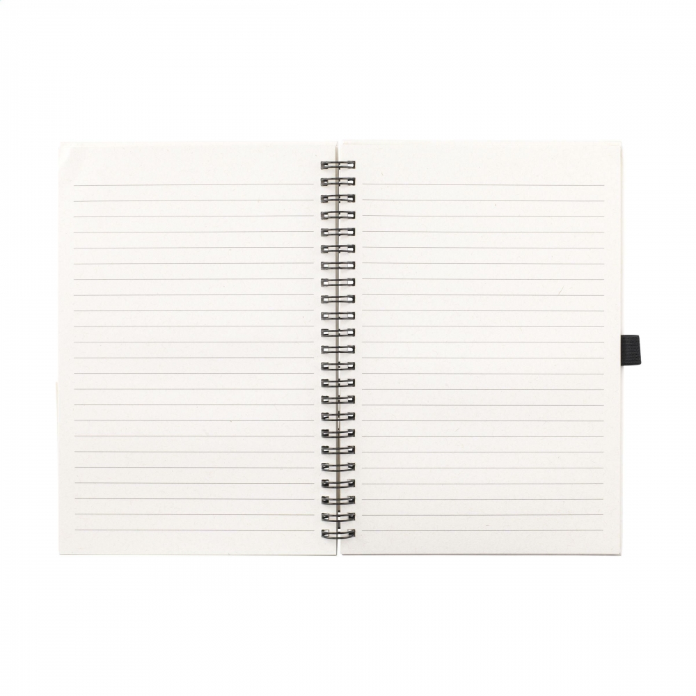 Artikel-Nr: CLP261512-357A5-Notizbuch mit einem Einband aus recycelten Milchkartons (bis zu 70%). Mit 70 Blatt/140 Seiten cremefarbenem, liniertem Papier (80 g / m²) und einer praktischen Stiftschlaufe. Gebunden in einer starken Spiralbindung. Die Milchtüten bestehen aus Aluminium, Papier und Kunststoff. Diese Materialien werden voneinander getrennt und das übrig gebliebene Papier wird verwendet, um den Umschlag dieses Notizbuchs herzustellen. Aufgrund der Verwendung von recycelten Materialien können kleine Imperfektionen im Material sichtbar sein. Dies verleiht dem Produkt ein einzigartiges Aussehen.