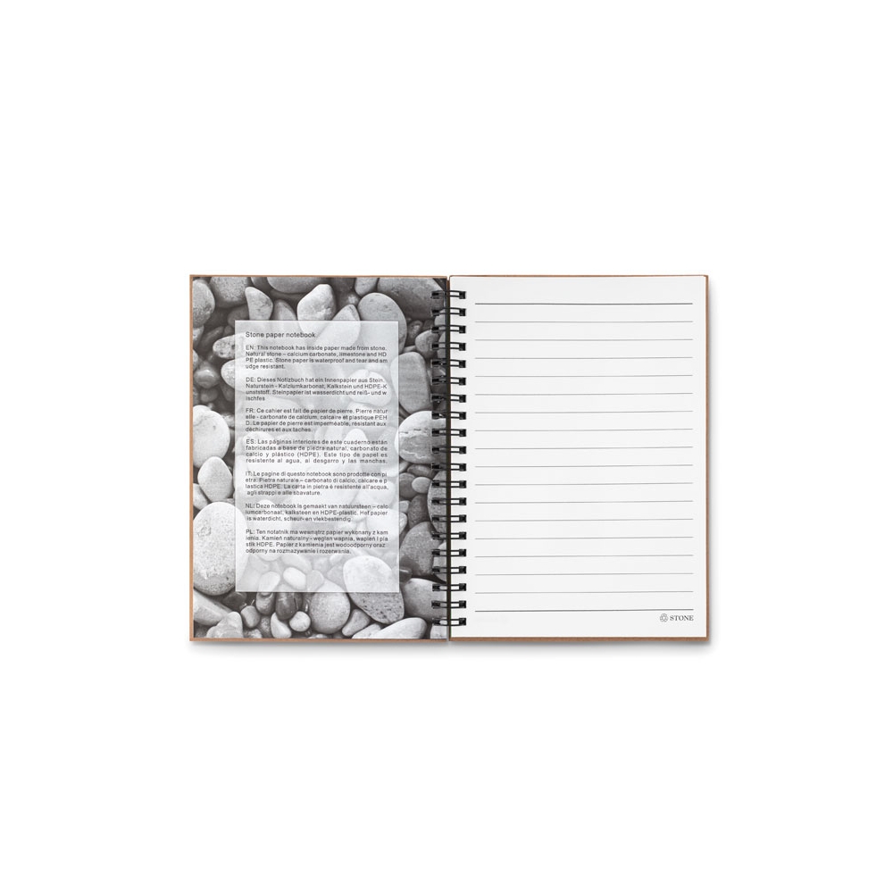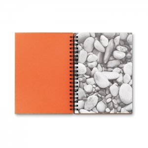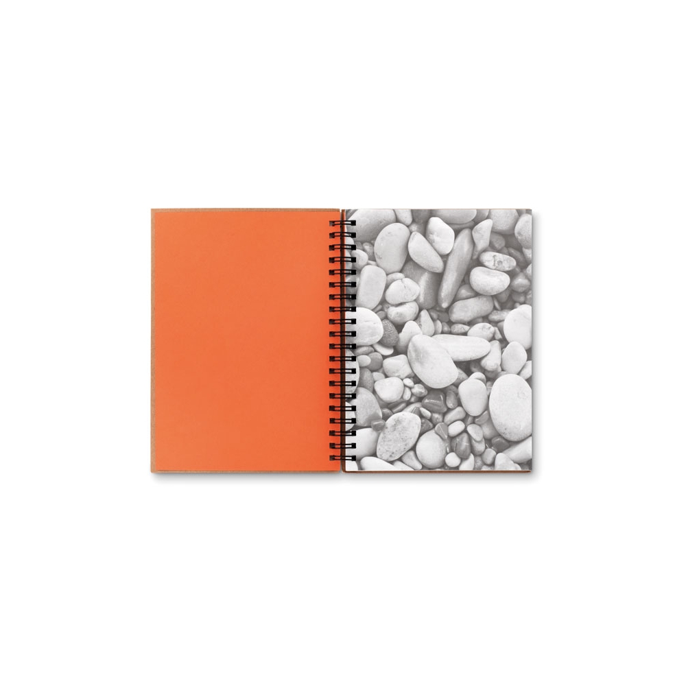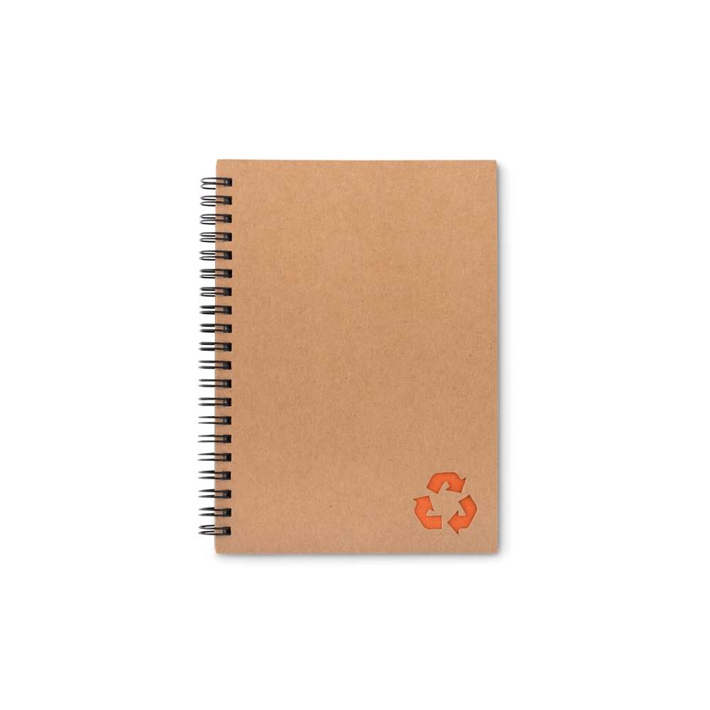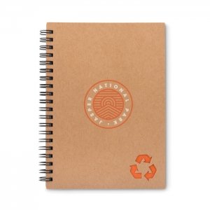 Artikel-Nr: OCBMO9536-10Notizbuch mit recyceltem Kartoneinband. Doppeldraht. 140 linierte Seiten aus Mineralpapier (70 Blatt). Mineralisches Papier wird aus Kalziumkarbonat und HDPE (Polyethylenharz) hergestellt. HDPE wird als Bindemittel verwendet. Es ist wasserdicht und Beständig gegen Fett.