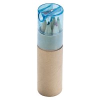 Set aus sechs Buntstiften in einer Box mit translucenter Oberseite und integriertem Anspitzer.