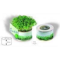 Inhalt: Metalldose (Aufreißdeckel) mit Spezialgranulat und eingelegten Samen: Kresse, Pflanzanleitung, - ohne - Magnet