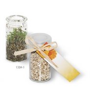 Artikel-Nr: 449013041Ein Gewächshaus aus Glas im Miniaturformat, das auch auf dem Schreibtisch oder auf der Fensterbank stehen kann. Im Gläschen ist bereits das Wachstumsgranulat mit den Samenkörnern enthalten. Auf dem Anhängekärtchen ist die Anleitung zur Anzucht der kleinen Pflanze bereits aufgedruckt. Im Standardmotiv auf der Vorderseite ist aber genug Platz für Ihren Werbeeindruck ab 250 Stück. Auch eine eigene Gestaltung des Kärtchens ist bereits ab 250 Stück möglich.