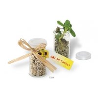 Artikel-Nr: 449001304Ein Gewächshaus aus Glas im Miniaturformat, das auch auf dem Schreibtisch oder auf der Fensterbank stehen kann. Im Gläschen ist bereits das Wachstumsgranulat mit den Samenkörnern enthalten. Auf dem Anhängekärtchen ist die Anleitung zur Anzucht der kleinen Pflanze bereits aufgedruckt. Im Standardmotiv auf der Vorderseite ist aber genug Platz für Ihren Werbeeindruck ab 250 Stück. Auch eine eigene Gestaltung des Kärtchens ist bereits ab 250 Stück möglich.