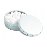 Artikel-Nr: 4281926-1-silCa. 23 g Pfefferminz in einer Dose mit der Grundfarbe silber. Format: Ø 5,3 x 1,8 cm, Haltbarkeit: 24 Monate, Lieferzeit: ca. 2 Wochen