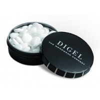 Artikel-Nr: 4281926-4-bCa. 23 g Pfefferminz in einer Dose mit der Grundfarbe blau. Format: Ø 5,3 x 1,8 cm, Haltbarkeit: 24 Monate, Lieferzeit: ca. 2 Wochen
