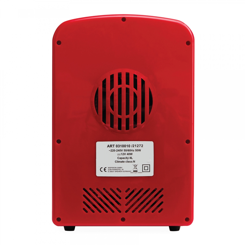 Artikel-Nr: INP56-0310010Mini-Kühlschrank HOT AND COOL: auch mit Wärmefunktion, 12-Volt-Anschluss für das Auto (Zigarettenanzünder) und 230-Volt-Steckdosen-Anschluss, inkl. Kabel, integrierte Griffmulde – ideal für Picknick und auf Reisen, Fassungsvermögen ca. 4 L