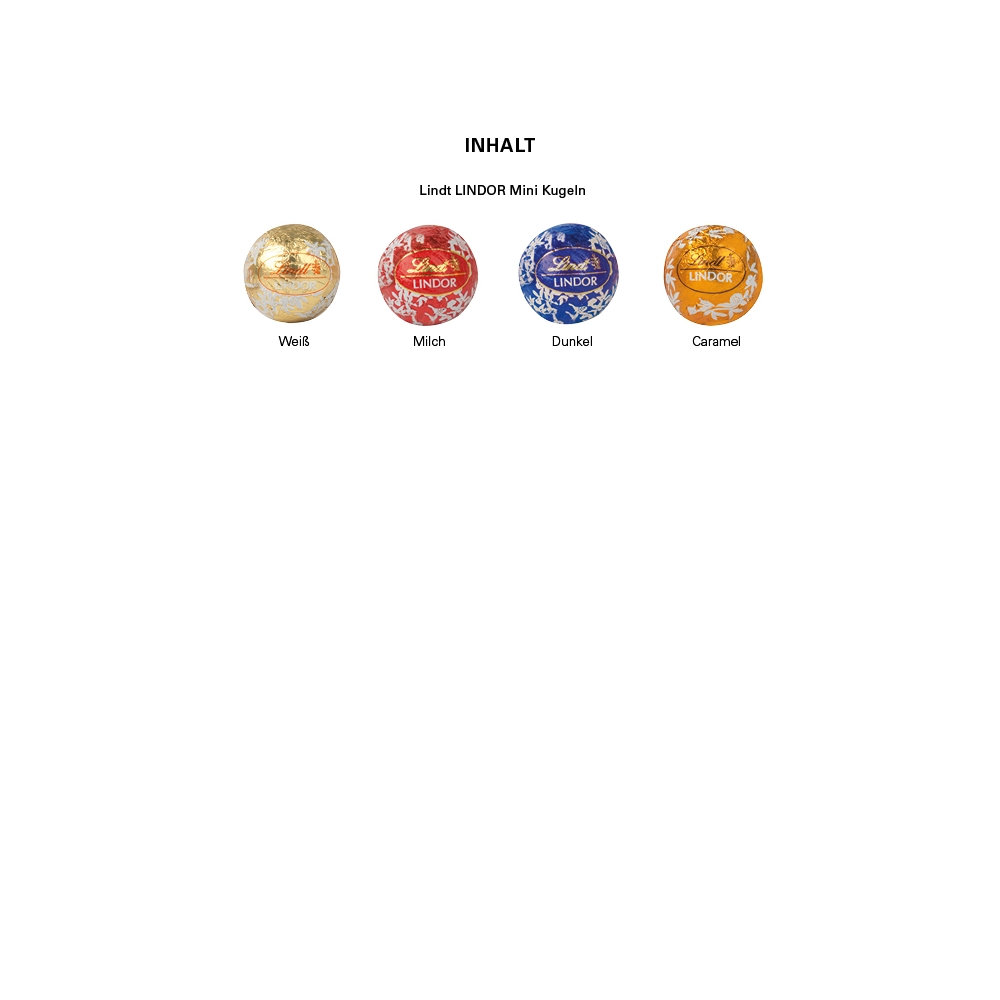 Ausführung: Material: Vollkartonhülle, Inlay, Füllung: 24 LINDOR Mini Kugeln
