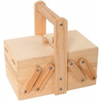 Aus Holz. Mit Tragegriff und drei geräumigen Fächern.