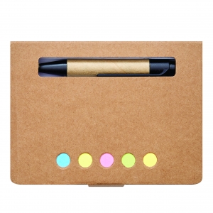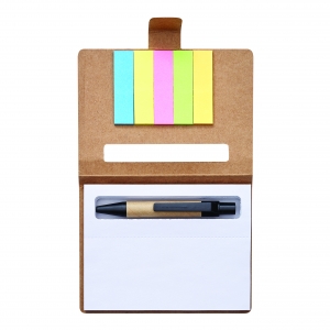 Artikel-Nr: INP56-1103138Mini-Notizbuch MEMO: inkl. Kugelschreiber (schwarzschreibend), 80 Blätter, 1 Schreibblock mit 80 Blättern zum Abreißen und 5 verschiedenfarbige Klebezettelblöcke – aus recycelbaren Materialien